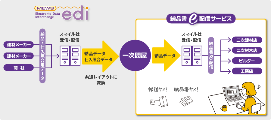 複数の仕入先からの納品データ・仕入照合用データをWeb上で参照したり、共通レイアウトでダウンロードできるサービスです。