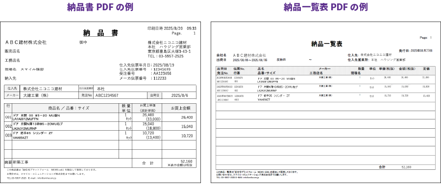 ②納品・納品一覧表のPDF 閲覧、印刷が出来ます
